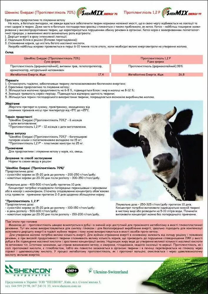 ШенМікс Енерджі пропіленгліколь 70% (суха фома) та Пропіленгліколь фармакопейний 99% (рідка форма)